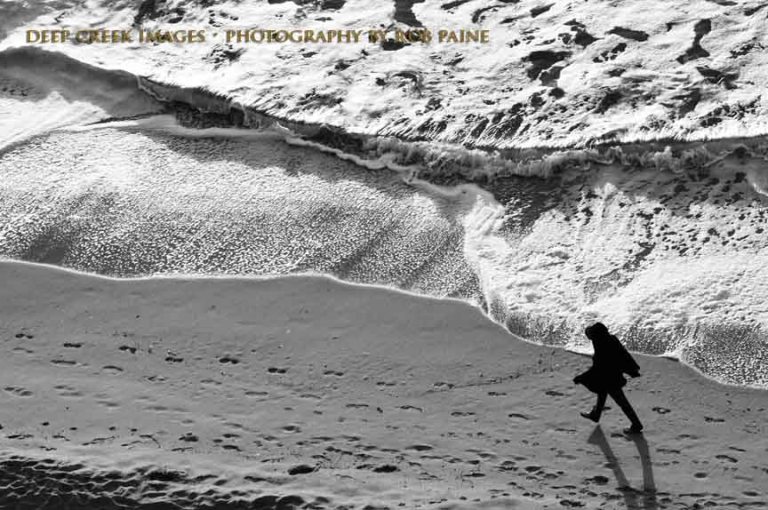 Photo by Rob Paine/Deep Creek Images/Copyright 2017Last month I had the pleasure to visit Myrtle Beach, S.C. One morning while sitting on a balcony 12 stories atop the beach, I started noticing the different ways in which people would walk down the beach. Some would stroll in a more relaxed fashion but some (like the person in this photo) seemed to be on a mission walking close the the tide. See below for a black and white version.