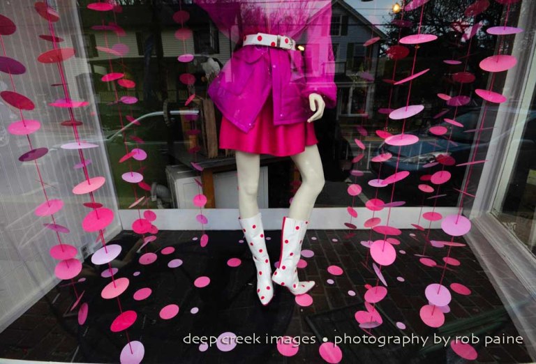 Occoquan has an abundance of photo opportunities ranging from nature scenes to quaint buildings. The town also includes several imaginative store front designs including this one at a shop aptly named The Polkadot Divas Both storefront windows at this store were dense with polkadots.