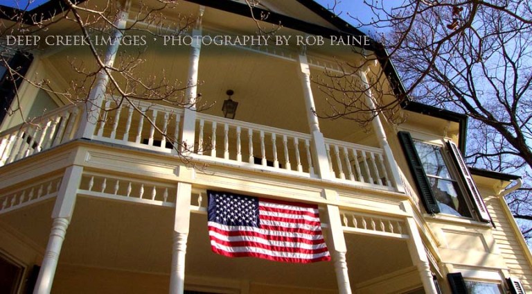 I have taken many photos of flags over the years but this one means the most to me. I took this image in Little Washington, Va., a few days after the terror attacks of Sept. 11, 2001. The light was beautiful on that fall afternoon and the design and order of this historic home framed the flag perfectly. (see second photo below)
