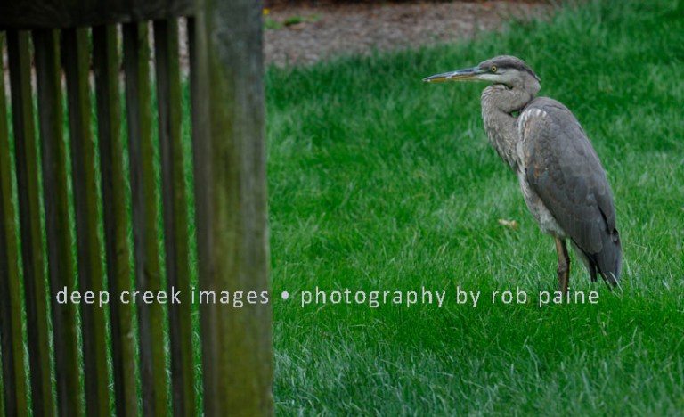Photo by Rob Paine/Deep Creek Images/Copyright 2017 One of my photo mantras is “don’t forget to look in your backyard.” Often we are lead to believe that to find great photo opportunities we need to travel to exotic locations that require great amounts of time and expense. While I do not knock the idea of photographing in a variety of locals, it is always a good idea to pay attention to what is around you, which was the case with this photo shot across our fence into a neighbor’s yard one morning where a blue heron decided to take a break.