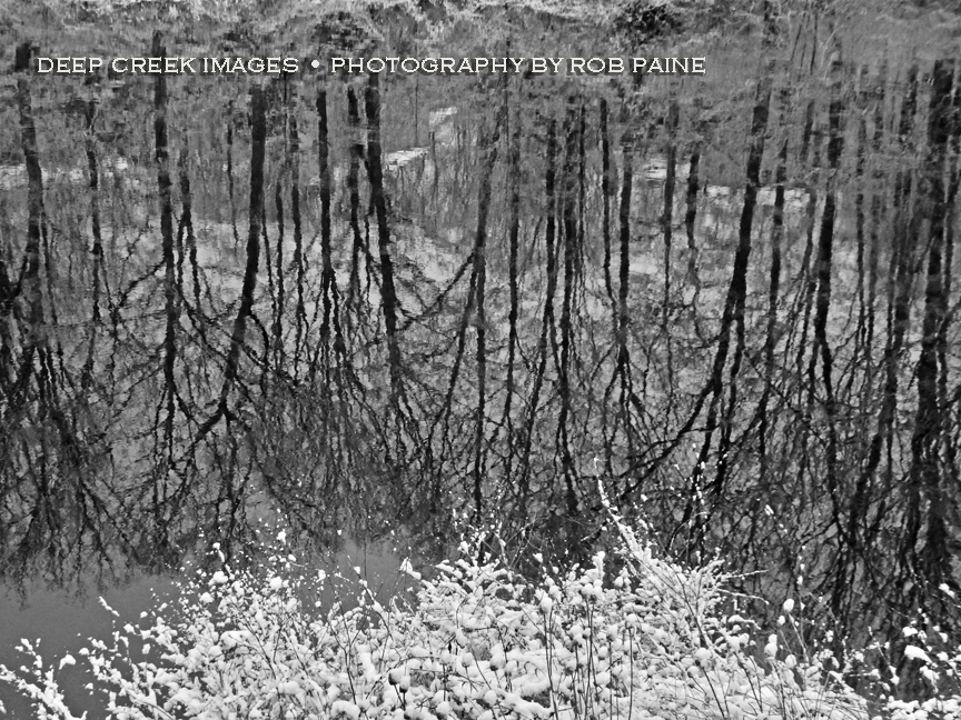 Winter Lake Reflection in Black and White
