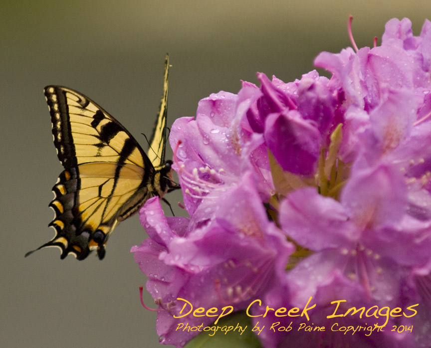 Butterfly on Pink and Yellow Flower
