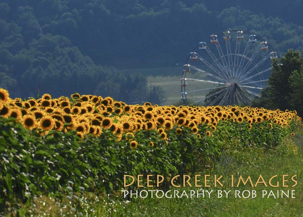 Fair Ferris Wheel Seen from Sunflower Field